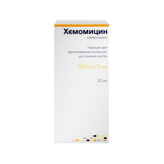 Azithromycin | Hemomycin powder d / pr suspension for oral administration 200 mg / 5 ml 10 g 1 pc.