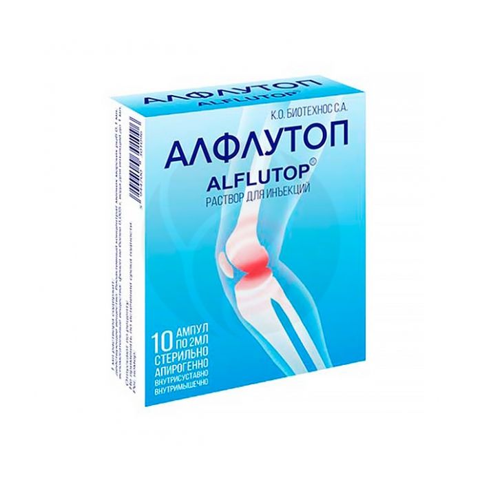Alflutop is a chondroprotector, the active component of which is a bioactive concentrate from small sea fish. The concentrate contains mucopolysaccharides (chondroitin sulfate), amino acids, peptides, sodium, potassium, calcium, magnesium, iron, copper and zinc ions.