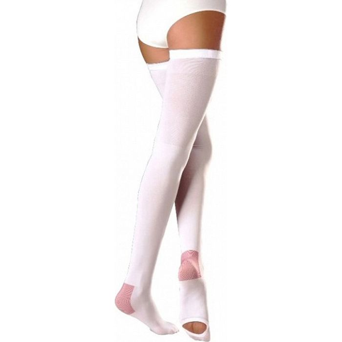 VENOTEKS HOSPITAL Thrombo18 1A210 compression antiembolic stockings are a modern and effective means for the prevention of venous thrombosis and thromboembolism of arterial and internal organs. Its application provides a narrowing of the lumen of the veins, restoration of the valves of the veins of the lower extremities, acceleration of venous blood flow towards the heart due to graduated pressure (compression) on the soft tissues and walls of the veins of the legs. The stockings have 1 class of compression: 18-20 mm Hg. Art. Body: 83% nylon and 17% elastane. Purpose of using VENOTEKS Thrombo18 1A210 compression anti-embolic stockings: childbirth and the postpartum period in the hospital all types of outpatient and inpatient surgical interventions stay in the intensive care and intensive care unit prolonged immobility with bed rest.Features and benefits of VENOTEKS HOSPITAL Thrombo18 stockings: proven clinical effectiveness guarantees anti-embolic effect physiologically distributed graduated compression: ankle 100%, knee 80% -60%, upper thigh 70% -30% special knitting technology ensures the temperature and water balance of the skin effective fixation and compression of stockings at the thigh and at the waist they do not roll down and do not overtighten the leg color-coded sizes in the heel area create a convenient selection of products open toe prevents the occurrence of fungal infection, provides the ability to monitor the condition of the fingers and feet products are made from modern, safe, hypoallergenic materials LatexFree the possibility of hand and machine washing, as well as sterilization in an autoclave ensure multiple use of the product guaranteed preservation of compression properties for 30 days of daily use. Contraindications and precautions. Be sure to inform your doctor if you have: dermatitis of various origins, impaired arterial circulation of the legs (endarteritis, atherosclerosis, diabetes), pressure sores, weeping eczema, acute soft tissue infection of the leg, infected trophic ulcers, ulcers of non-venous origin, metabolic edema , cardiopulmonary insufficiency in the stage of decompensation.bedsores on the legs, weeping eczema, acute infection of the soft tissues of the leg, infected trophic ulcers, ulcers of non-venous origin, metabolic edema, cardiopulmonary insufficiency in the stage of decompensation.bedsores on the legs, weeping eczema, acute infection of the soft tissues of the leg, infected trophic ulcers, ulcers of non-venous origin, metabolic edema, cardiopulmonary insufficiency in the stage of decompensation.