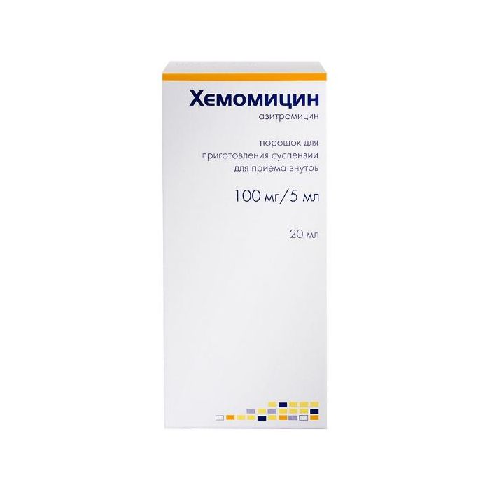 Azithromycin | Hemomycin powder d / pr suspension for oral administration 100 mg / 5 ml 11.43 g 1pc
