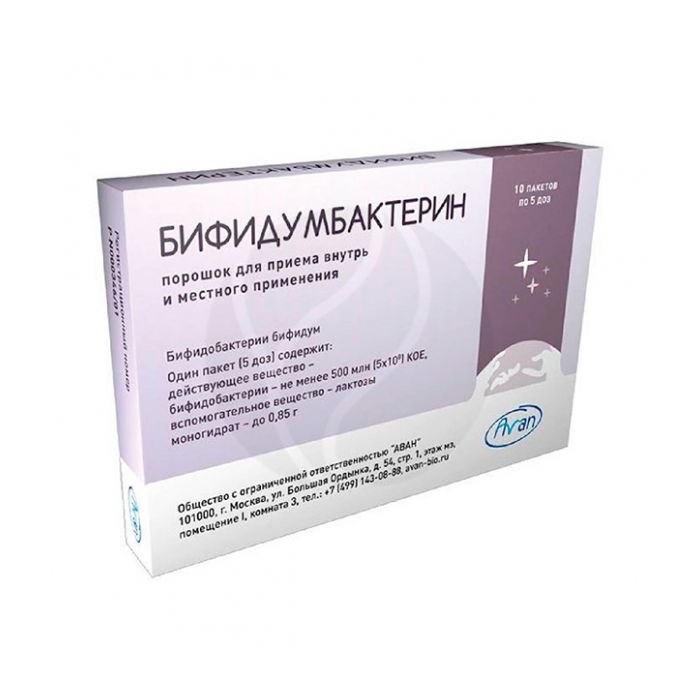 Active substance: bifidumbacteria - not less than 500 million (5-108) CFU.