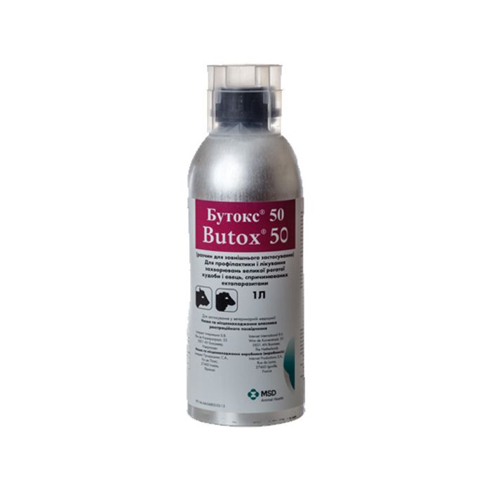 Butox 50 has a wide spectrum of insect-acaricidal action, is active against ixodid, scabies, chicken, cat mites, flies, gnats, bedbugs and other animal ectoparasites. Deltamethrin entering the body of arthropods by contact or enterality accumulates in the ganglia of the peripheral nerves and inhibits their activity. Violates the coordination of movements of the pathogen, causing then its paralysis, lethargy and death.