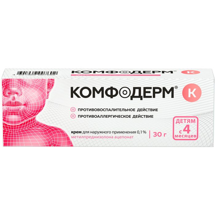 When applied externally, Comfoderm K suppresses inflammatory and allergic skin reactions, as well as reactions associated with increased proliferation, which leads to a decrease in the objective symptoms of inflammation (erythema, edema, oozing) and subjective sensations (itching, irritation, pain, etc.) ).