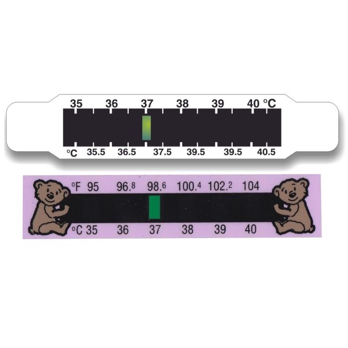 The Hallcrest baby head thermometer (thermometer) is a flat strip with 6 indicators that change color when a certain temperature is reached. The strip is decorated with a decorative pattern with bears so that the temperature measurement procedure does not cause negative emotions in the child. The innovative technology of liquid crystals is used, which made the thermometer absolutely safe and convenient to use. Temperature range - from 35 to 40 ° С. Measurement step - 1.0 ° С. The error is less than 1.0 ° C.