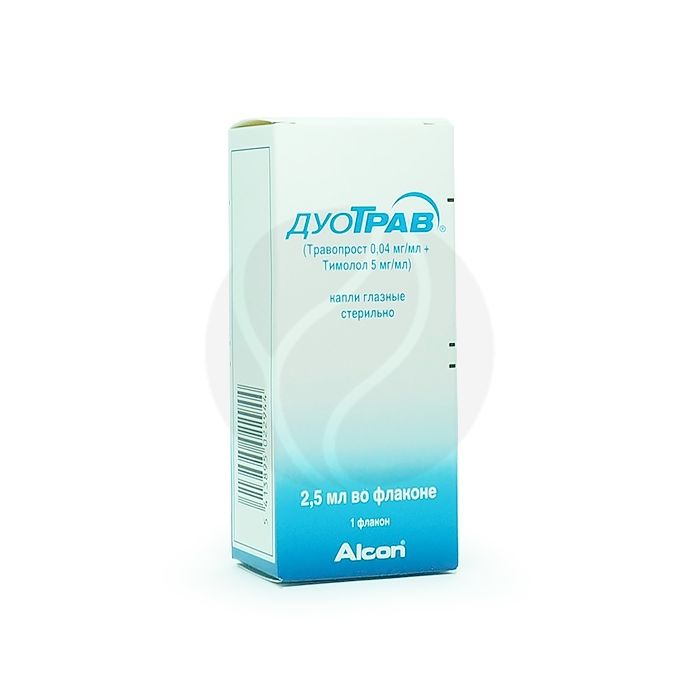 The use of timolol in patients with atopy or a history of severe pathological reactions to various allergens can provoke more severe reactions in response to the administration of various allergens. Such patients may be poorly responsive to the usual doses of epinephrine to control anaphylactic reactions. Effects on the eyes Travoprost can gradually change the color of the eyes by increasing the number of melanosomes (pigment granules) in the melanocytes. Before starting treatment, patients should be informed about the possibility of permanent changes in eye color. Treatment of only one eye can lead to permanent heterochromia. The long-term effects on melanocytes and the consequences of this effect are currently unknown. The color change in the iris is slow and may not be noticeable for months or years.Eye color changes are predominantly observed in patients with mixed iris color (blue-brown, gray-brown, yellow-brown or green-brown), a similar effect was observed in patients with brown eyes. Typically, brown pigmentation around the pupil extends concentrically to the periphery of the iris; in connection with which the entire iris or parts of it acquire a brownish color. After the end of therapy, no further accumulation of brown pigment in the iris was noted. Darkening of the skin of the periorbital region and / or eyelids has been reported with travoprost. Travoprost can gradually change the condition of the eyelashes in the treated eye (s); these changes include changes in length, thickness, pigmentation and / or number of eyelashes. The mechanism for these changes is currently not clear.The drug contains propylene glycol, which can irritate the skin. The drug contains macrogol glyceryl hydroxystearate, which can cause skin reactions. During treatment with prostaglandin F2 analogues? noted macular edema. Travoprost should be used with caution in patients with neovascular, angle-closure (narrow-angle) glaucoma, pigmentary and congenital glaucoma, open-angle glaucoma with pseudophakia, pseudoexfoliative glaucoma, inflammatory diseases of the organ of vision, aphakia, pseudophakia with rupture of the posterior lens capsule of the intracranial or anterior lens patients with risk factors for macular edema, iritis, uveitis. With the use of prostaglandin analogues, changes in the periorbital region and eyelids were noted.Deepening of the groove of the eyelids was noted only in the course of studies in monkeys, while in the course of clinical studies in humans, no data on this effect was obtained, which made it possible to consider it species-specific. Anesthesia during surgical interventions Ophthalmic drugs from the group of beta-blockers can suppress beta-agonistic effects, for example, of adrenaline. The anesthesiologist should be informed if the patient is receiving timolol. Contact lenses Patients should be instructed to remove contact lenses before using DuoTravЃ and wait at least 15 minutes before reusing them.Anesthesia during surgical interventions Ophthalmic drugs from the group of beta-blockers can suppress beta-agonistic effects, for example, of adrenaline. The anesthesiologist should be informed if the patient is receiving timolol. Contact lenses Patients should be instructed to remove contact lenses before using DuoTravЃ and wait at least 15 minutes before reusing them.Anesthesia during surgical interventions Ophthalmic drugs from the group of beta-blockers can suppress beta-agonistic effects, for example, of adrenaline. The anesthesiologist should be informed if the patient is receiving timolol. Contact lenses Patients should be instructed to remove contact lenses before using DuoTravЃ and wait at least 15 minutes before reusing them.
