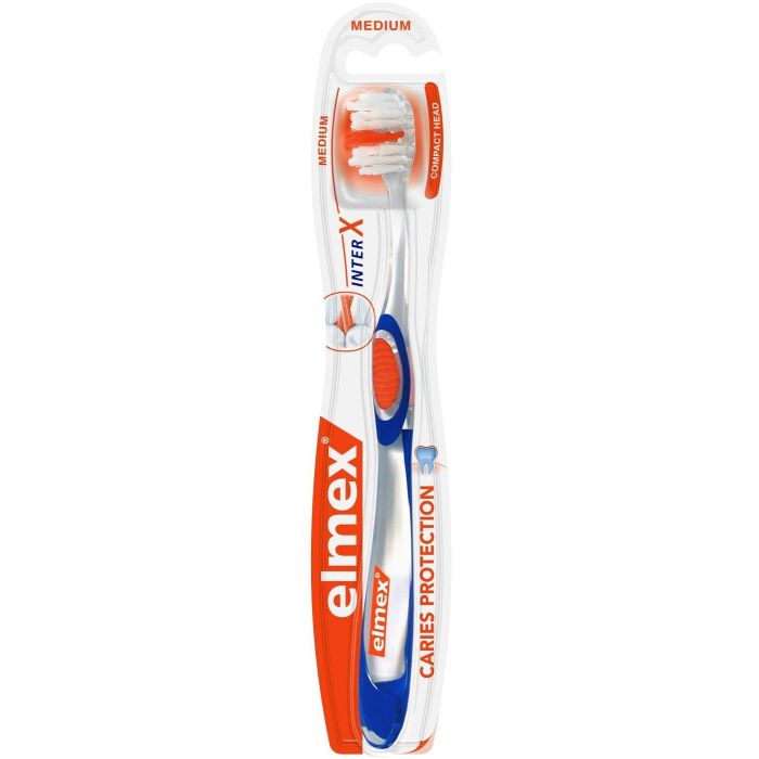 Toothbrush Elmex Protection against caries provides highly effective plaque removal even from hard-to-reach interdental spaces.