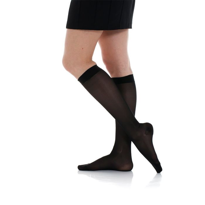 Anti-varicose knee-highs are made of combined materials. Class 1 anti-varicose jersey has a compressive effect on the underlying soft tissues (18–22 mm Hg). Contributes to the normalization of the outflow of venous blood due to graduated compression on the muscles and the venous wall. In the area of the ankle and ankle joint, the compression is 100%, below the knee joint, the compression is already 70% of the initial value. The gradual decrease in compression allows to normalize the outflow of fluid from the lower legs, protects the venous wall from deformation and accelerates blood flow, which simplifies and normalizes the operation of the venous pump. Special high-tech knitting of compression knitwear allows you to apply metered pressure throughout the day.The use of compression hosiery is a generally recognized method for the prevention and treatment of diseases of the veins of the lower extremities. Ergoforma compression hosiery is available in several colors. Visually, only a specialist can distinguish it from ordinary knitwear. You provide a healing compressive effect while remaining attractive. In addition, it has been proven that the use of compression hosiery has a better effect on the vein walls than elastic bandaging, in which it is impossible to create a graduated compression effect.that the use of compression hosiery has a better effect on the vein walls than elastic bandage, in which it is impossible to create a graduated compression effect.that the use of compression hosiery has a better effect on the vein walls than elastic bandage, in which it is impossible to create a graduated compression effect.