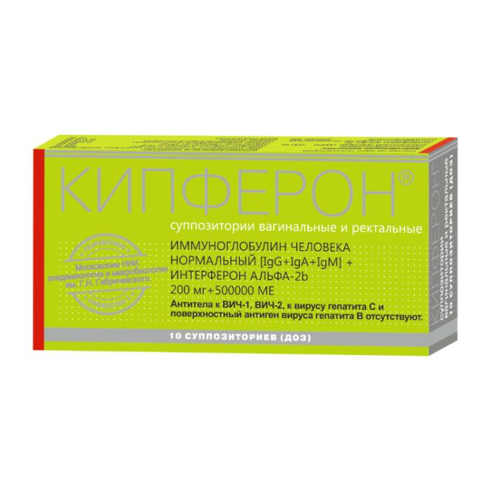 immunoglobulin man Normal [IgG, IgM, IgA], interferon alfa-2b | Kipferon suppositories vaginal and rectal 200 mg + 500,000 IU 10 pcs.