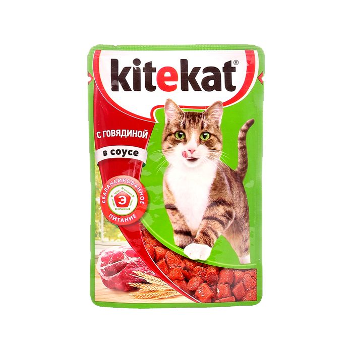 Kitekat with Beef is a complete canned food for adult cats. It is based on a balanced nutrition formula that contains proteins, minerals, vitamins, taurine and animal fats.