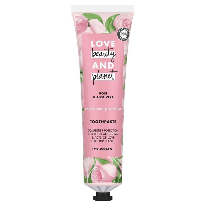 We believe that every little sign of love for the planet makes it more beautiful. This is why our Rose Aloe Vera Toothpaste is lovingly made and vegan with a 94% biodegradable formula. Plus, the aluminum tube and plastic cap of our toothpaste are completely recyclable, so you can make the world a better place while you brush your teeth. This toothpaste with Aloe Vera and other carefully selected ethically sourced herbal ingredients helps to strengthen your teeth and keep your gums healthy, for a great smile. In addition, you will love the delicate aroma of the Bulgarian rose, which gives the paste a delicate and exquisite taste.To diversify your daily care of your teeth and gums and get real pleasure, try a toothpaste with the valuable properties of Aloe Vera. We made sure that there was no Sls in it,artificial colors or sweeteners, so you can smile happily, enjoying the effect and not harming the environment! For the health of teeth and gums, dentists recommend brushing your teeth for 2-3 minutes at least 2 times a day. Products Love, Beauty & Planet will give you beauty and a feeling of happiness from the fact that you are doing good for the planet. Our planet needs our special care, as does your beauty. The entire production path of our products has been tested, and now we can say with confidence that after us there is no harm to the environment. We do not test our products on animals and use only ethically sourced ingredients to create our products. And now every ingredient in our composition is ready to work to give you effective care and delicious sensation.so you can smile happily while enjoying the effect and not harming the environment! For the health of teeth and gums, dentists recommend brushing your teeth for 2-3 minutes at least 2 times a day. Products Love, Beauty & Planet will give you beauty and a feeling of happiness from the fact that you are doing good for the planet. Our planet needs our special care, as does your beauty. The entire production path of our products has been tested, and now we can say with confidence that after us there is no harm to the environment. We do not test our products on animals and use only ethically sourced ingredients to create our products. And now every ingredient in our composition is ready to work to give you effective care and delicious sensation.so you can smile happily while enjoying the effect and not harming the environment! For the health of teeth and gums, dentists recommend brushing your teeth for 2-3 minutes at least 2 times a day. Products Love, Beauty & Planet will give you beauty and a feeling of happiness from the fact that you are doing good for the planet. Our planet needs our special care, as does your beauty. The entire production path of our products has been tested, and now we can say with confidence that after us there is no harm to the environment. We do not test our products on animals and use only ethically sourced ingredients to create our products. And now every ingredient in our composition is ready to work to give you effective care and amazing sensation.enjoying the effect and not harming the environment! For the health of teeth and gums, dentists recommend brushing your teeth for 2-3 minutes at least 2 times a day. Products Love, Beauty & Planet will give you beauty and a feeling of happiness from the fact that you are doing good for the planet. Our planet needs our special care, as does your beauty. The entire production path of our products has been tested, and now we can say with confidence that after us there is no harm to the environment. We do not test our products on animals and use only ethically sourced ingredients to create our products. And now every ingredient in our composition is ready to work to give you effective care and amazing sensation.enjoying the effect and not harming the environment! For the health of teeth and gums, dentists recommend brushing your teeth for 2-3 minutes at least 2 times a day. Products Love, Beauty & Planet will give you beauty and a feeling of happiness from the fact that you are doing good for the planet. Our planet needs our special care, as does your beauty. The entire production path of our products has been tested, and now we can say with confidence that after us there is no harm to the environment. We do not test our products on animals and use only ethically sourced ingredients to create our products. And now every ingredient in our composition is ready to work to give you effective care and delicious sensation.Beauty & Planet will give you beauty and a feeling of happiness from the fact that you are doing good for the planet. Our planet needs our special care, as does your beauty. The entire production path of our products has been tested, and now we can say with confidence that after us there is no harm to the environment. We do not test our products on animals and use only ethically sourced ingredients to create our products. And now every ingredient in our composition is ready to work to give you effective care and delicious sensation.Beauty & Planet will give you beauty and a feeling of happiness from the fact that you are doing good for the planet. Our planet needs our special care, as does your beauty. The entire production path of our products has been tested, and now we can say with confidence that after us there is no harm to the environment. We do not test our products on animals and use only ethically sourced ingredients to create our products. And now every ingredient in our composition is ready to work to give you effective care and delicious sensation.that after us there is no harm to the environment. We do not test our products on animals and use only ethically sourced ingredients to create our products. And now every ingredient in our composition is ready to work to give you effective care and delicious sensation.that after us there is no harm to the environment. We do not test our products on animals and use only ethically sourced ingredient