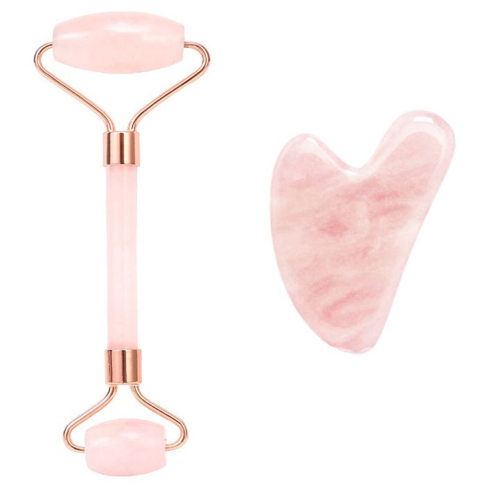 Massage set roller + scraper of gua sha from natural rose quartz, Smarter
