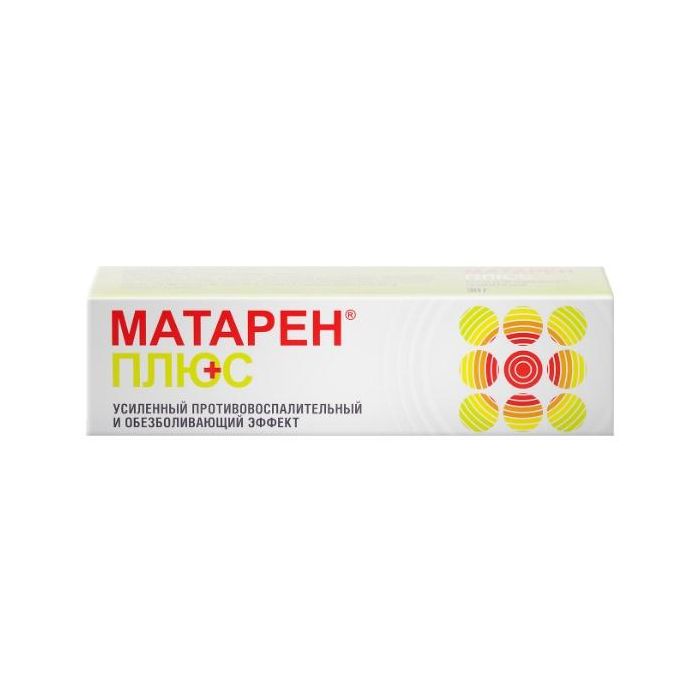 Mataren® Plus reduces pain in the joints (including the joints of the spine) and in the muscles at rest and during movement, helps to increase the volume of movement of the joints (in the area of the cream). Reduces morning stiffness and swelling of the joints.
