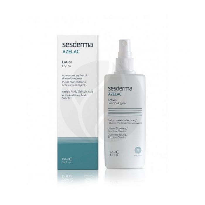 Sesderma Azelac lotion for face, hair and body based on salicylic and azelaic acids is intended for the treatment of skin with rosacea, reddening and rosacea, folliculitis due to shaving and depilation, with acne and skin pigmentation. The tool regulates the secretion of sebum, has an antiseptic and antifungal effect, soothes.