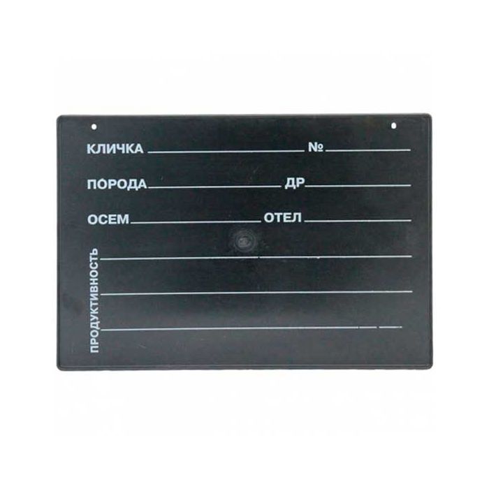 The stencil (information plate) for cows is made of rigid plastic 35cm by 25cm, has one clean side for the ration, and the necessary information about the animal is applied on the other side.