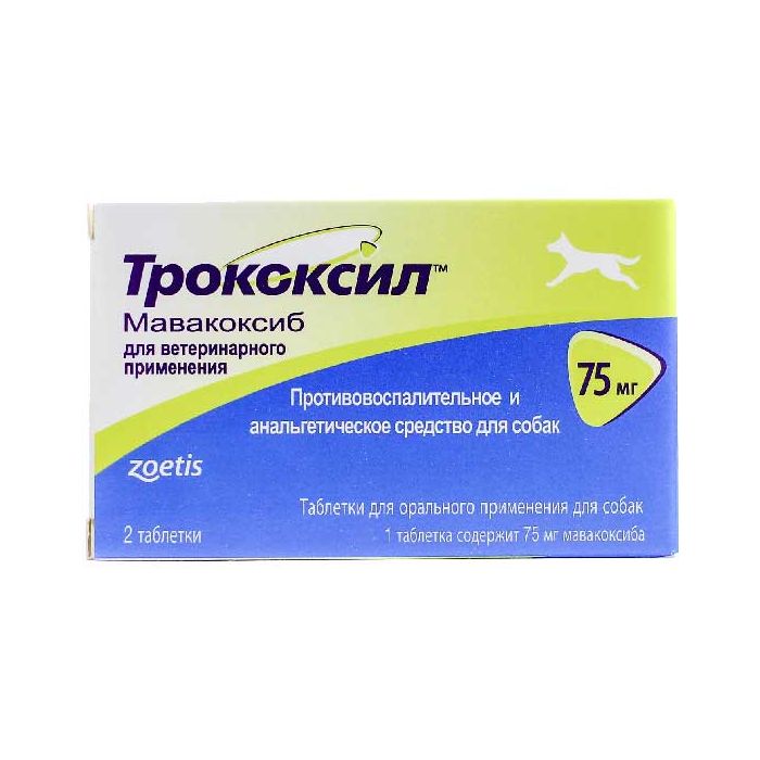 Trocoxil (Trocoxil) 75mg - tablets for oral administration are used as an anti-inflammatory and analgesic agent for degenerative joint diseases in dogs. In appearance, Trokoksil is a triangular light brown tablet with an embossed content of Mavacoxib in the tablet on one side.