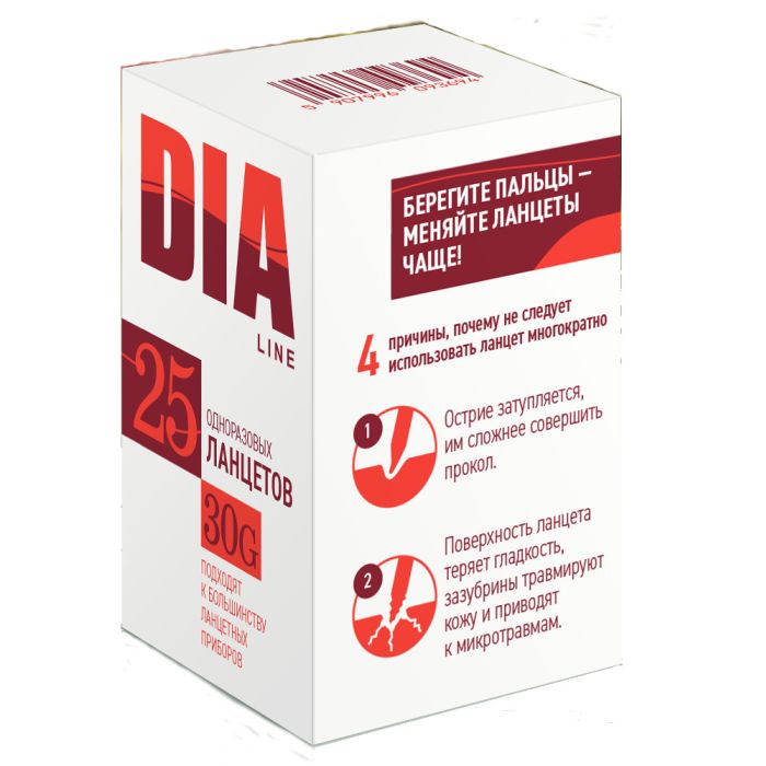 DIALINE lancets are one of the thinnest, have a diameter of only 30G (0.3 mm) and are perfect for most lancet devices sold in Russia.