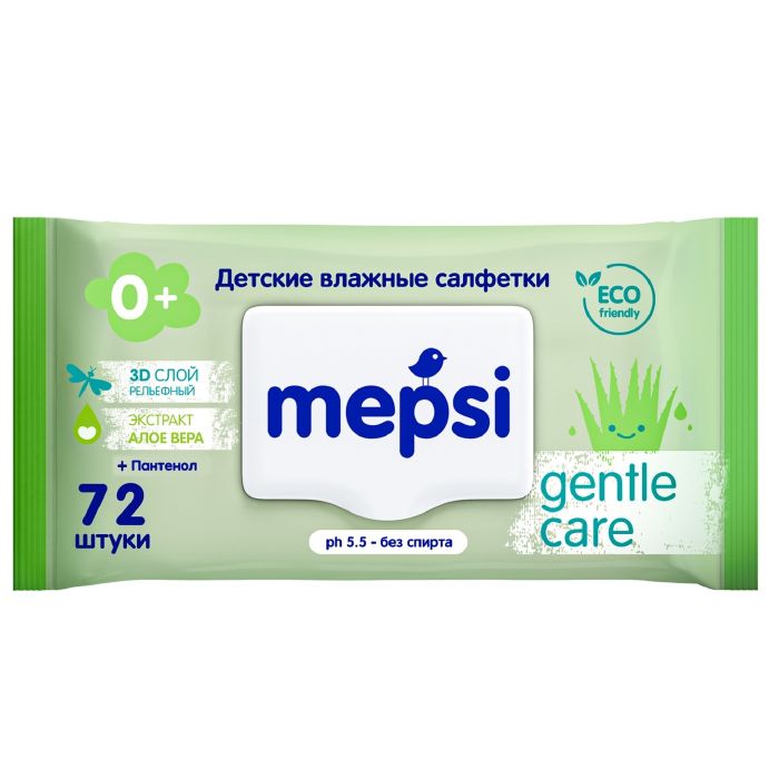 Mepsi wet wipes with extracts of aloe vera, chamomile, green tea and calendula are specially designed to cleanse the delicate skin of children, do not dry the skin and do not cause redness.
