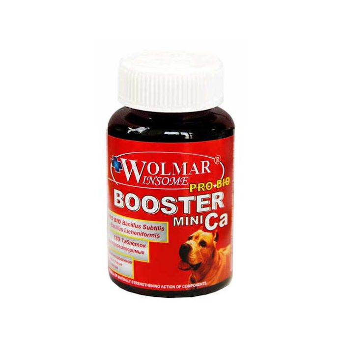 Wolmar Winsome Pro Bio Booster Ca Mini is a multifunctional multicomplex, balanced with calcium, phosphorus, water and fat-soluble vitamins, essential amino acids in volume and taking into account the physiological needs of dwarf and small breed puppies.
